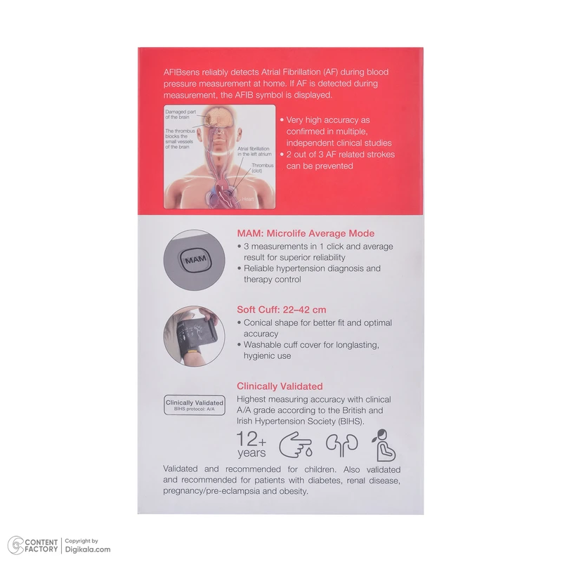 فشارسنج بازویی دیجیتال مایکرولایف مدل BP-B3 AFIB، نسل ارتقاءیافته و پیشرفتهتر از سری محبوب Classic است که با تمرکز ویژه بر غربالگری حرفهای آریتمی قلبی و مدیریت دادههای پیچیده، به یک ایستگاه نظارت قلبی-عروقی خانگی تبدیل شده است. این محصول سوئیسی، مجهز به الگوریتم تأییدشده AFIB است که قادر به شناسایی فیبریلاسیون دهلیزی - شایعترین عامل سکته مغزی قابل پیشگیری - میباشد.